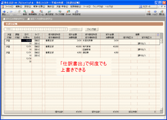 弥生会計には、勘定科目や補助科目を集計して、設定した割合で自動的に家事按分の